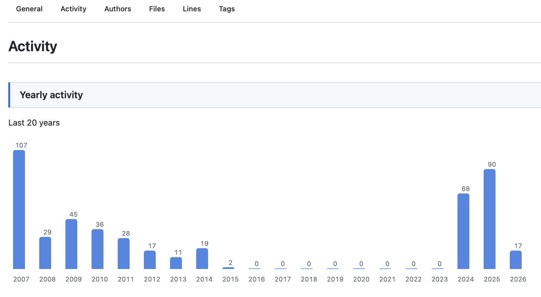 For anyone wanting to understand a project’s “health,” this report offers many insights at a glance: who the main contributors are, which phases were most active, whether it has stalled recently, and so on.