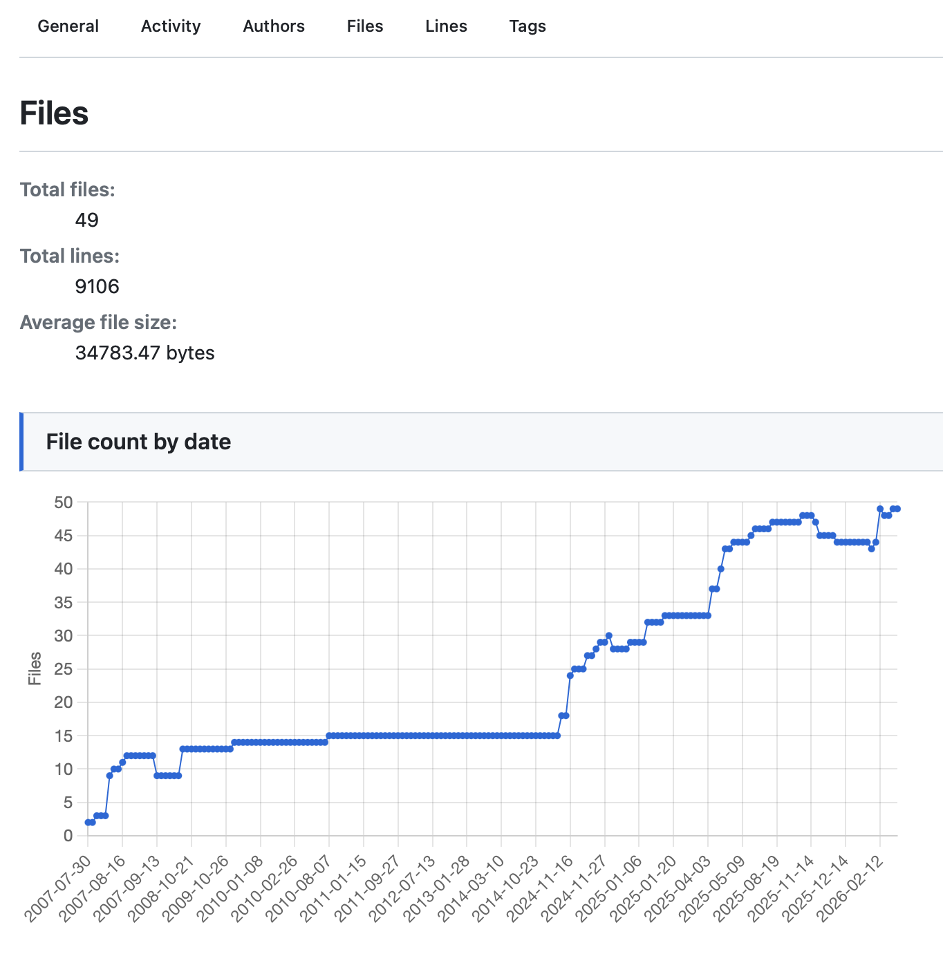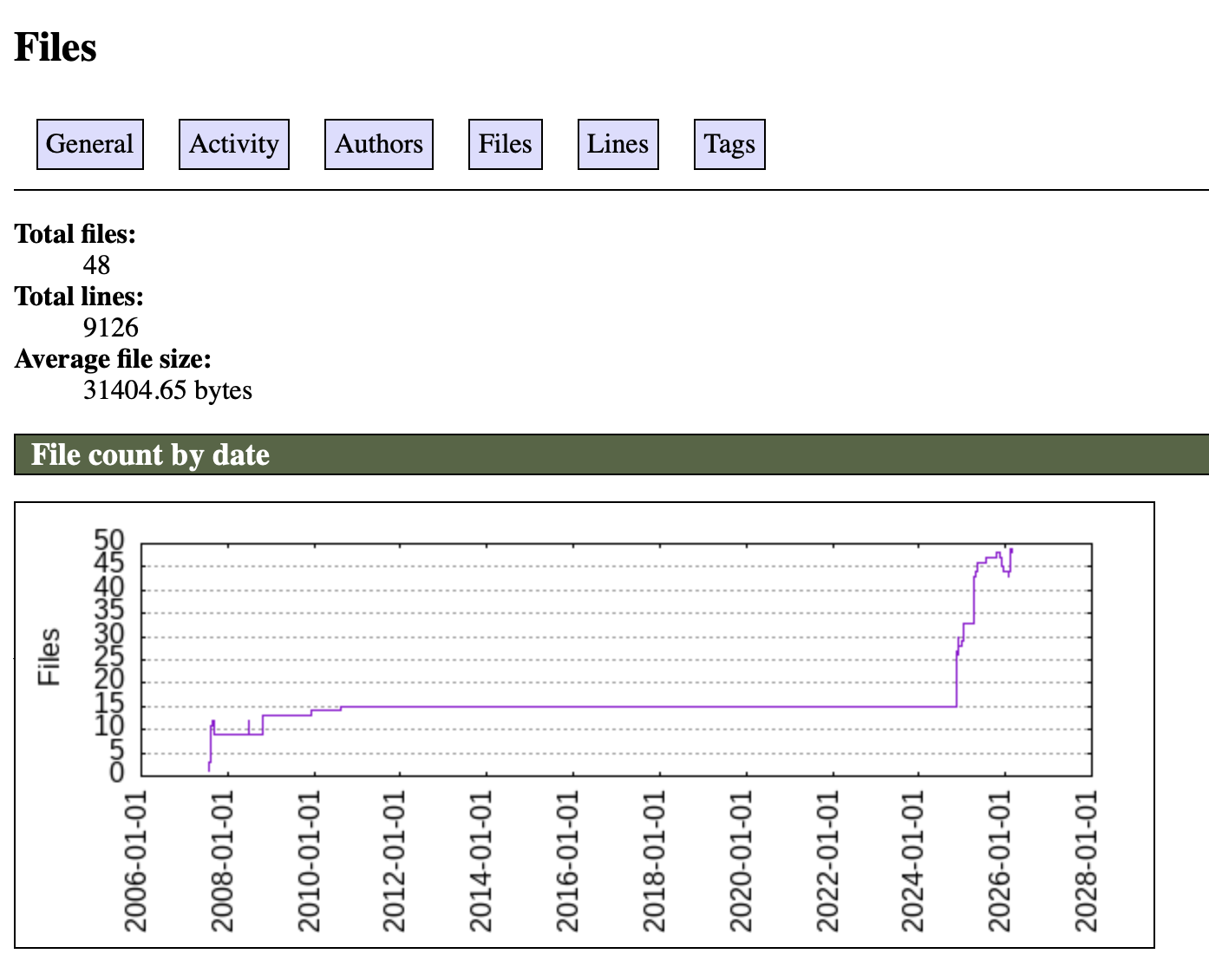 One less perceptible change in this upgrade is that I completely replaced GitStats’ chart engine from Gnuplot to Chart.js.