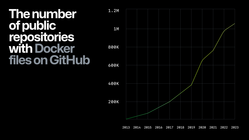 GitHub 是开发人员操作和扩展云原生应用程序的地方。 2023 年,430 万个公共和私有存储库使用 Dockerfile,超过 100 万个公共存储库使用 Dockerfile 来创建容器。过去几年,我们看到 Terraform 和其他云原生技术的使用量不断增加。 IaC 实践的增加也表明开发人员正在为云部署带来更多标准化。